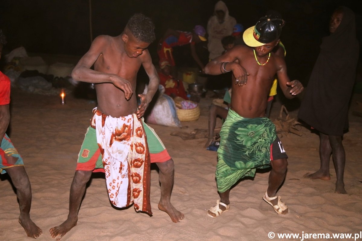 Tak więc, zwiedzamy utarte szlaki, znane nam z opowieści przyjaciół i znajomych, takie jak Aleję Baobabów w rejonie Morondawy, kilka rezerwatów gór Tsingy, parki narodowe: Kirindy, Ranomafana, Andasibe i Ankarana, robimy trekkingi w parkach Isalo i Andringitra. Płyniemy 3 dni w dłubanych łodziach po Tsiribihina i nocujemy w namiotach nad brzegiem rzeki. Wpatrujemy się z zachwytem w wyłaniające się z tumanów mgły przyjazne twarze miejscowych ludzi. Później zjeżdżamy z utartych szlaków i tłuczemy się po bezdrożach, przez piaszczyste wertepy i zaznaczone kijami brody rzeczne. W kurzu zatykającym nozdrza i pokrywającym nasze ciało i ubrania, z tęsknotą wypatrujemy Kanału Mozambickiego. Tak dojeżdżamy nad wschodnie wybrzeże, by odpocząć i spotkać nomadów Vezo oraz zobaczyć ich oryginalne stocznie, w których do dziś dnia buduje się tradycyjne łodzie bez użycia metalowych gwoździ. Wypływamy z ludźmi Vezo w rejs w dłubance z kwadratowym żaglem z worków po ryżu. Jemy pieczone nad ogniskiem homary i popijamy mętny ponch palmowy z plastikowych butelek po wodzie mineralnej. Potem jeszcze po trudach podróży odpoczniemy nad szmaragdowym morzem i białych piaskach na północy kraju, koło Diego Suarez.